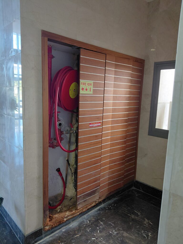 ארון חשמל מעץ שהוחלף לארון פח איכותי ואסטטי – מצד ימין ניתן לראות את הארון מעץ הישן ומצד שמאל את הארון פח החדש